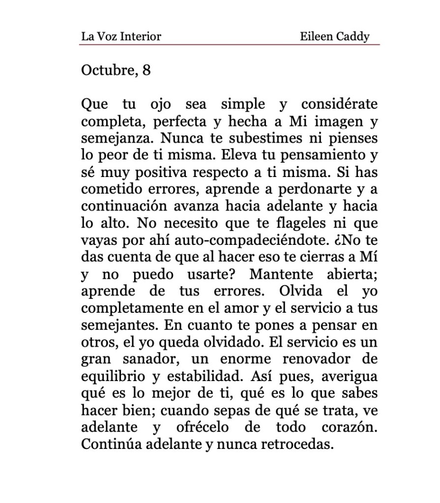La Voz Interior de Eileen Caddy, jueves 8 de octubre