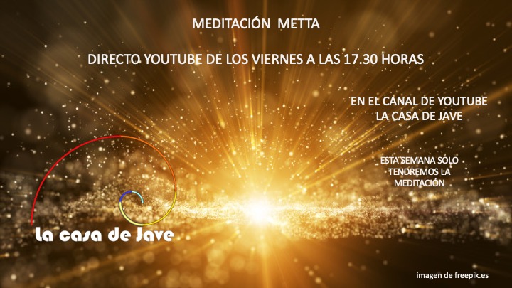 Este viernes, como siempre a las 17.30 horas tendremos nuestro rato semanal en el directo YouTube de La casa de Jave. Esta vez solo tendremos meditación, la meditación Metta, sin charla previa, por petición de algunos de vosotros.