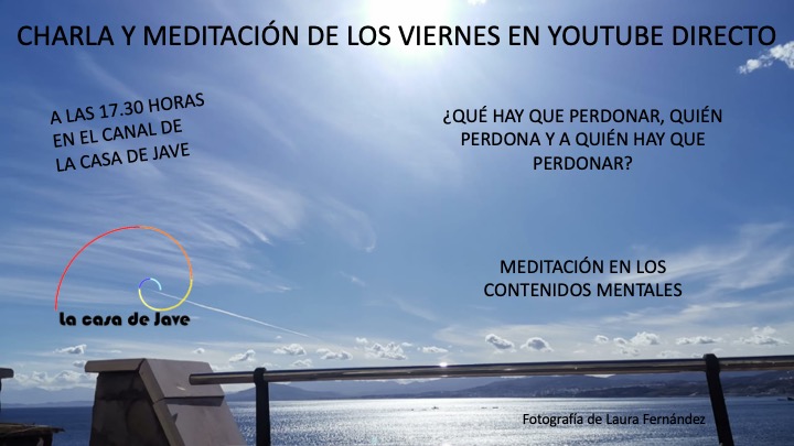Es viernes. Esta tarde tenemos charla y meditación. Por supuesto, como siempre, la puedes ver cuando quieras con el enlace que te pego más abajo. Incluso mañana te pasaré enlaces de la charla y la meditación en audio por si quieres solo escucharme y te ahorra el verme, jeje.
