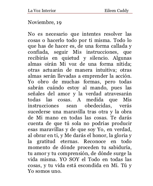La Voz Interior de Eileen Caddy, jueves 19 de noviembre