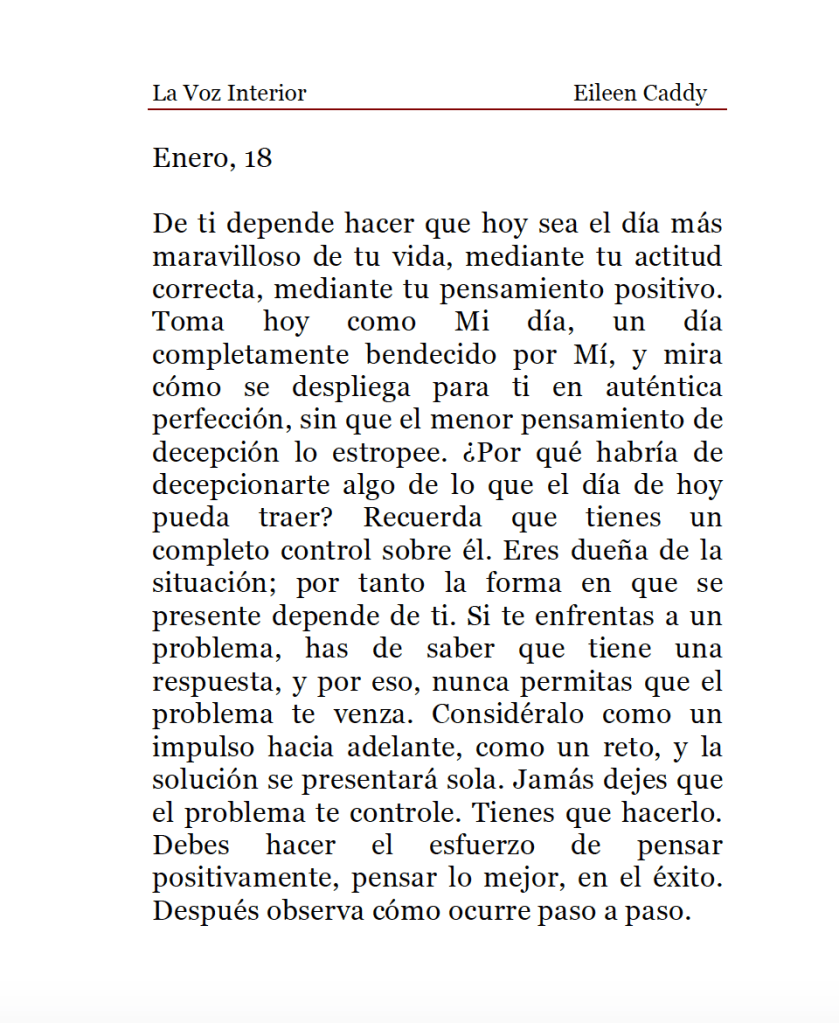 La Voz Interior de Eileen Caddy, lunes 18 de enero
