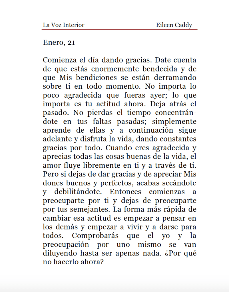 La Voz Interior de Eileen Caddy, jueves 21 de enero