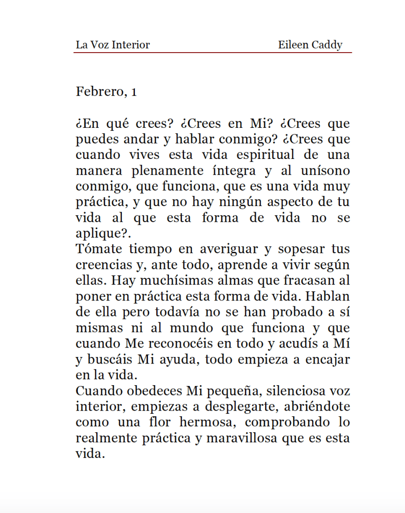 La Voz Interior de Eileen Caddy, lunes 1 de febrero
