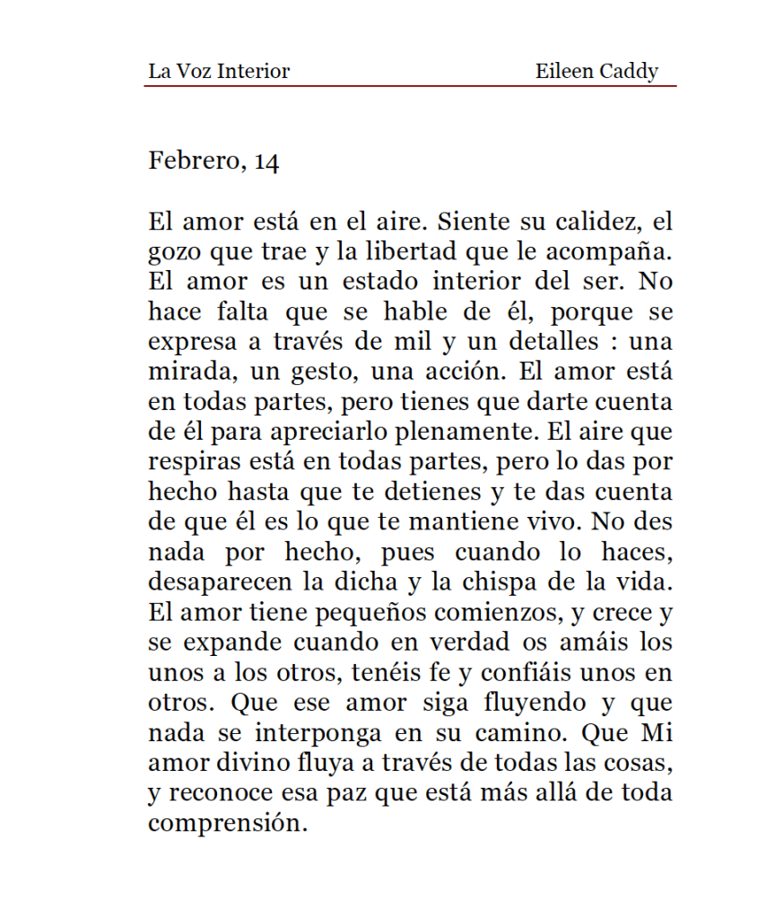 La Voz Interior de Eileen Caddy, domingo 14 de febrero