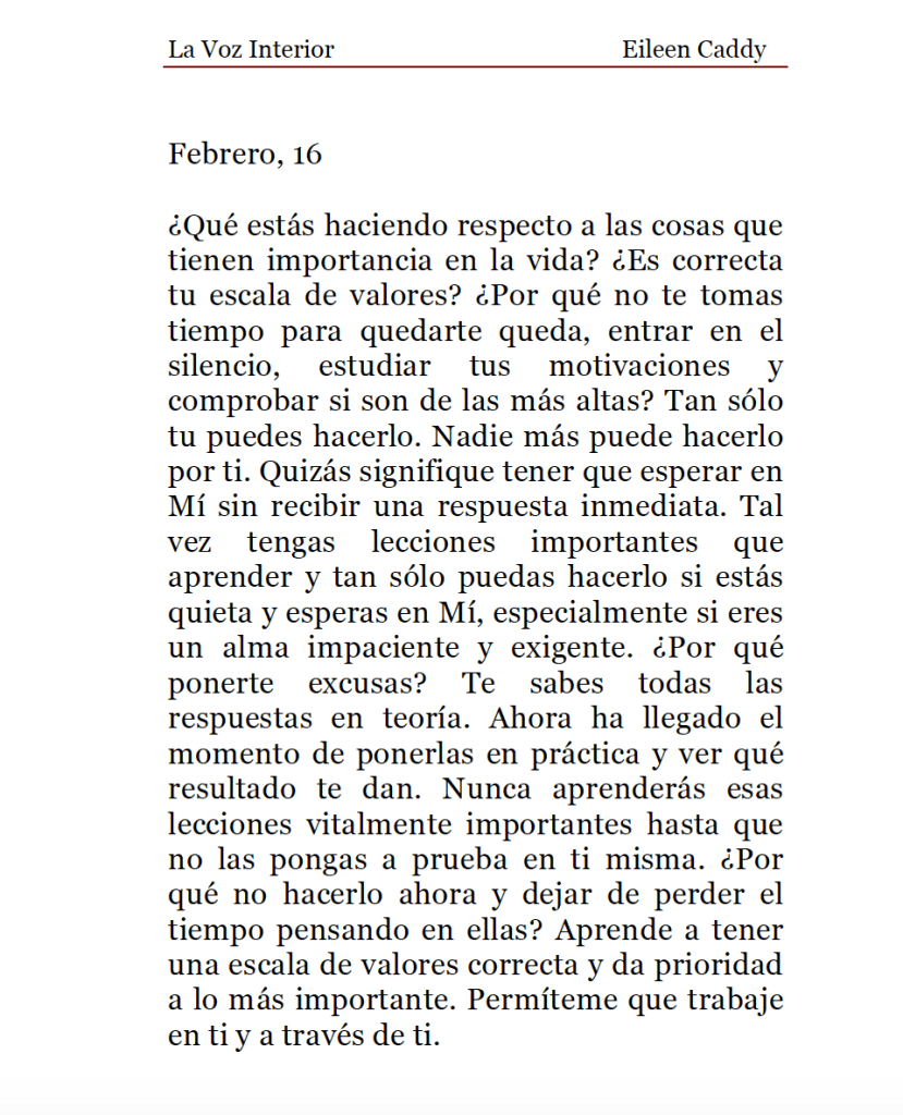 La Voz Interior de Eileen Caddy, martes 16 de febrero