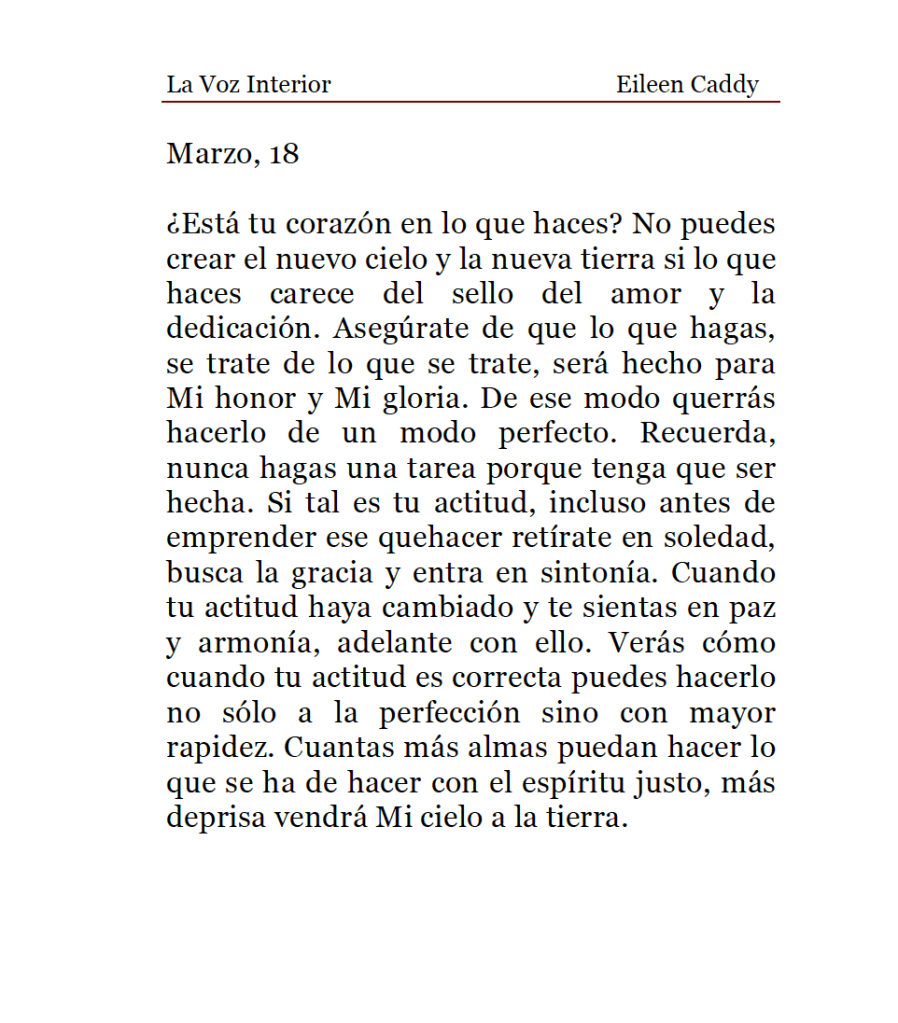 La Voz Interior de Eileen Caddy, jueves 18 de marzo