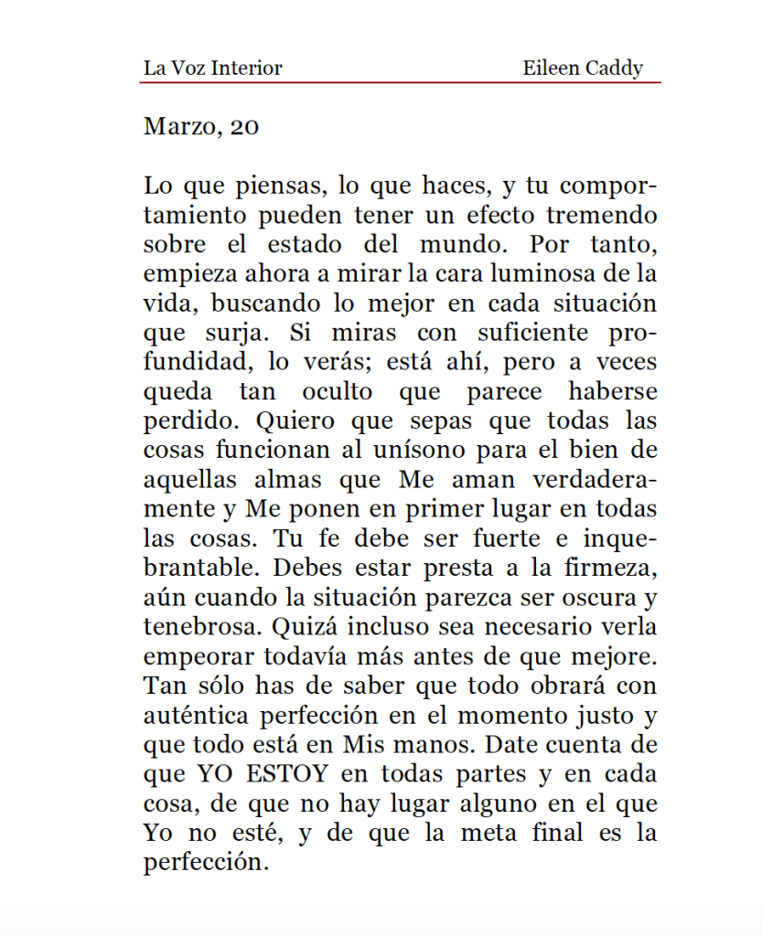 La Voz Interior de Eileen Caddy, sábado 20 de marzo