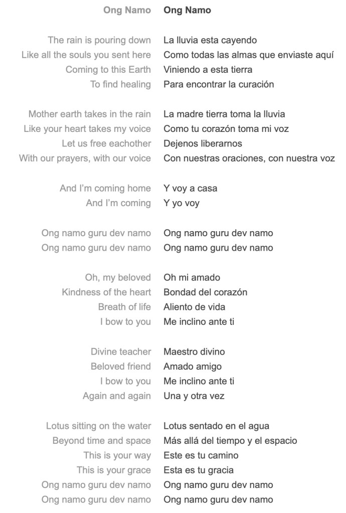 De entre todas sus canciones, la más oída es este «Ogn namo», cuya letra te comparto en inglés y en español, para que el mero hecho de leerla te sirva como primera meditación, para después dejarte llevar por la melodía maravillosa de este tema.