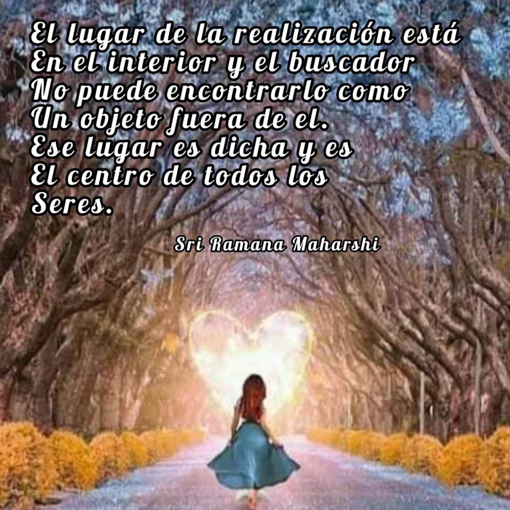 El lugar de la realización está en el interior y el buscador no puede encontrarlo como un objeto fuera de él. Ese lugar es Dicha y es el centro de todos los seres __ Sri Ramana Maharshi