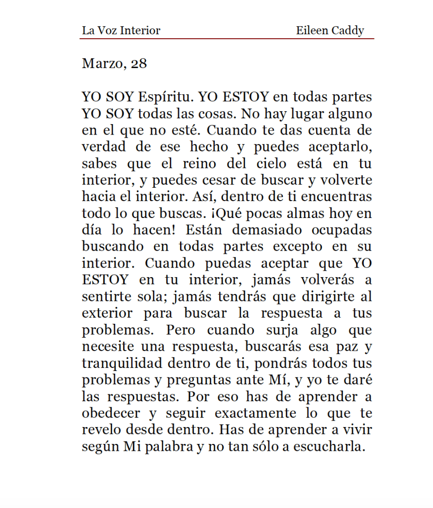 La Voz Interior de Eileen Caddy, domingo 28 de marzo