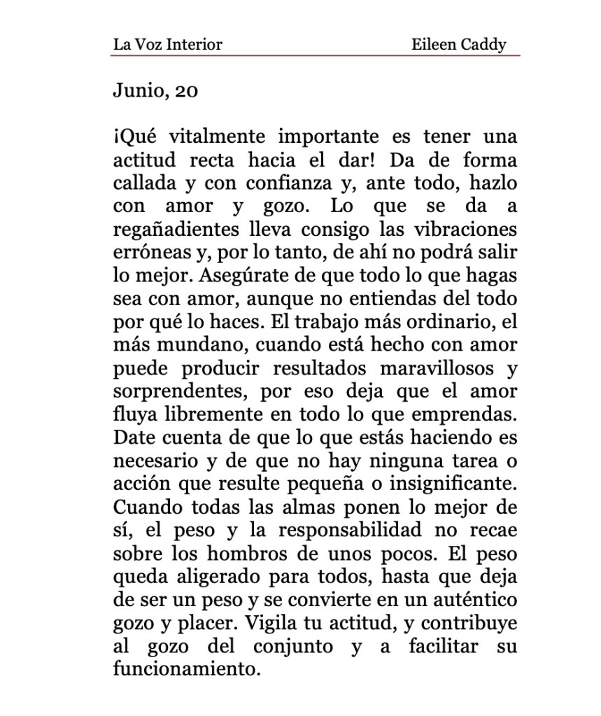 La Voz Interior de Eileen Caddy, domingo 20 de junio