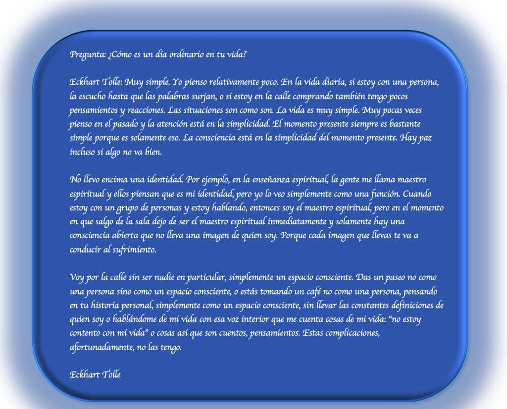 Mi regalo del martes: una respuesta de Eckhart Tolle a la pregunta ¿cómo es un día ordinario en tu vida?