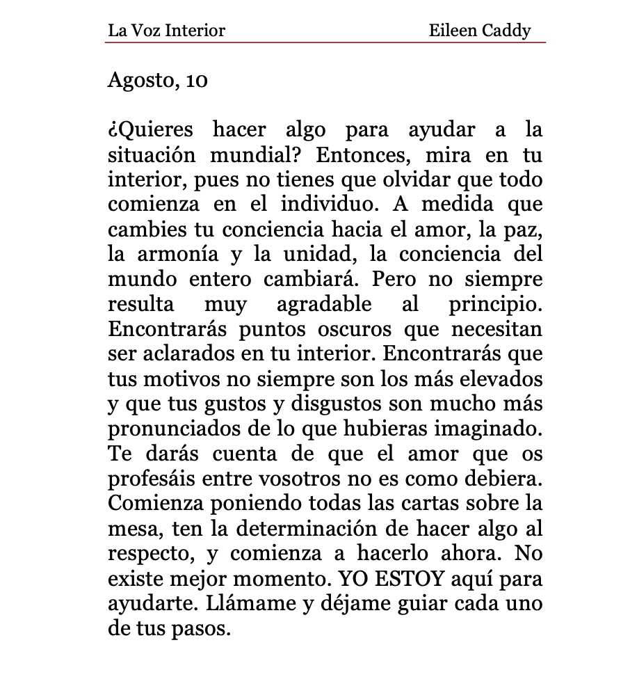 La Voz Interior de Eileen Caddy, martes 10 de agosto