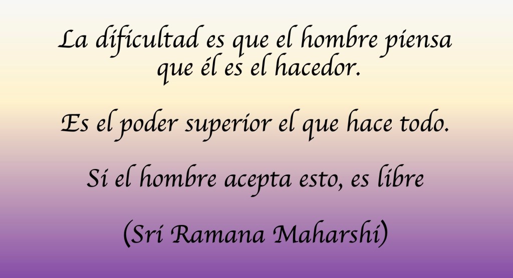 La dificultad es que el hombre piensa que él es el hacedor. Es el poder superior el que hace todo. Si el hombre acepta esto, es libre (Sri Ramana Maharshi)