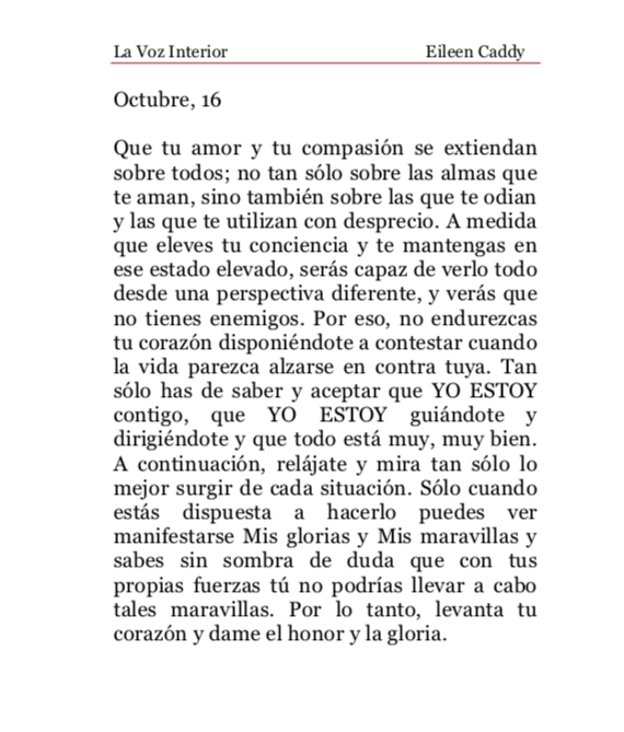 La Voz Interior de Eileen Caddy, sábado 16 de octubre