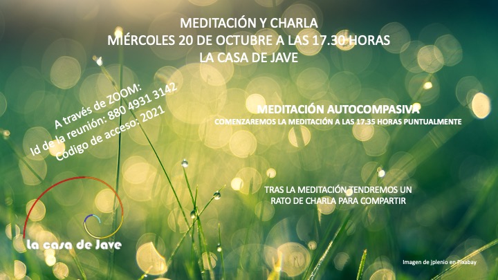 Mañana nos volvemos a ver, si os apetece, en el canal de Zoom de La casa de Jave. Haremos una meditación autocompasiva guiada, para a continuación compartir como nos ha ido, o hablar de aquello que te apetezca.