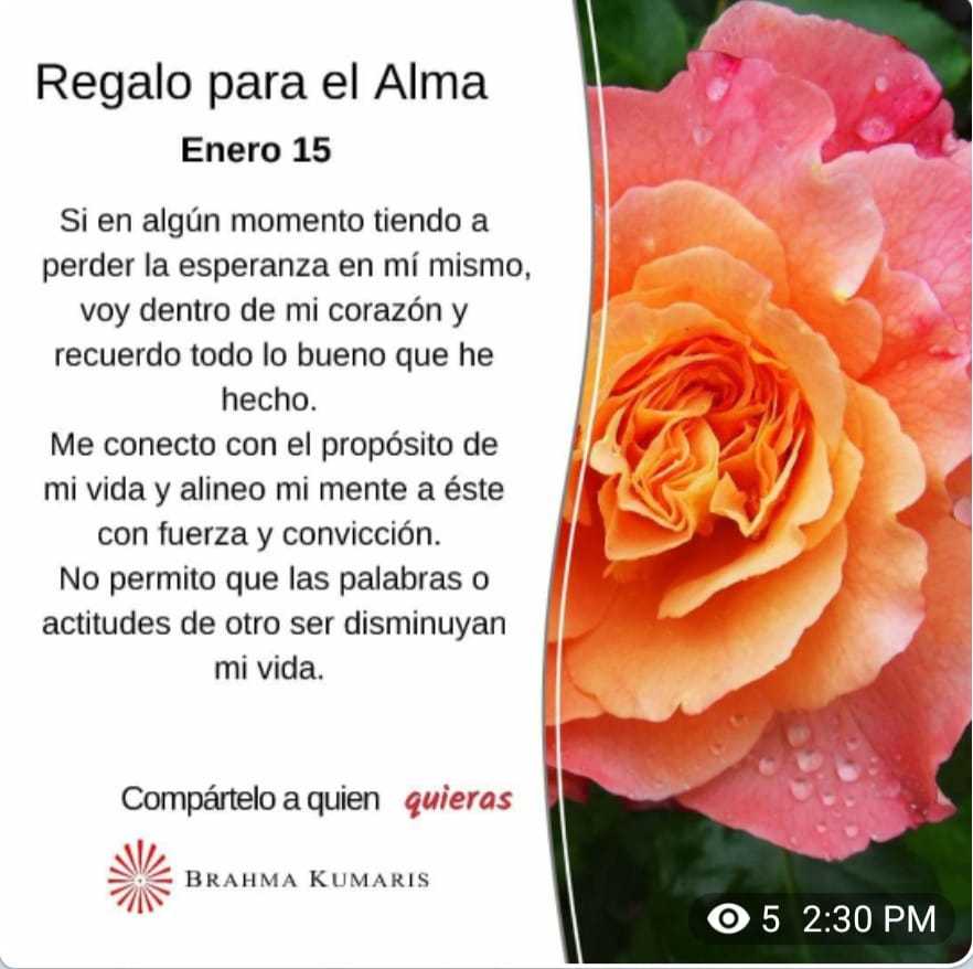 «Regalo para el Alma» de Brahma Kumaris, sábado 15 de enero