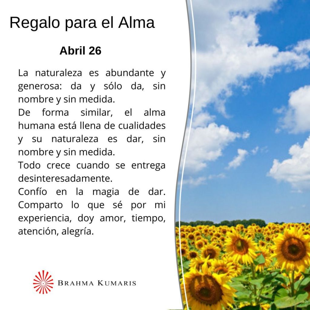 «Regalo para el Alma» de Brahma Kumaris, martes 26 de abril