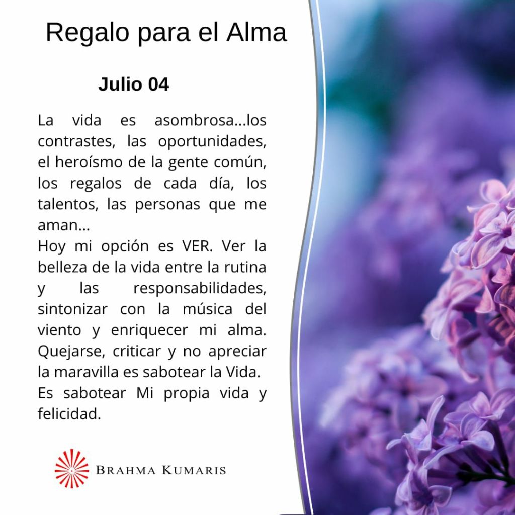 «Regalo del Alma» de Brahma Kumaris, lunes 4 de julio