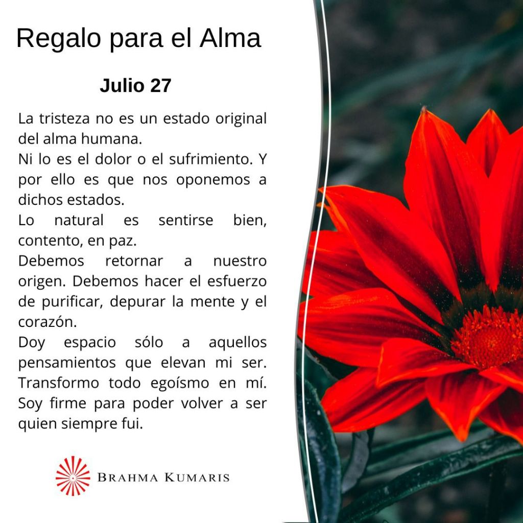 «Regalo para el Alma» de Brahma Kumaris, miércoles 27 de julio