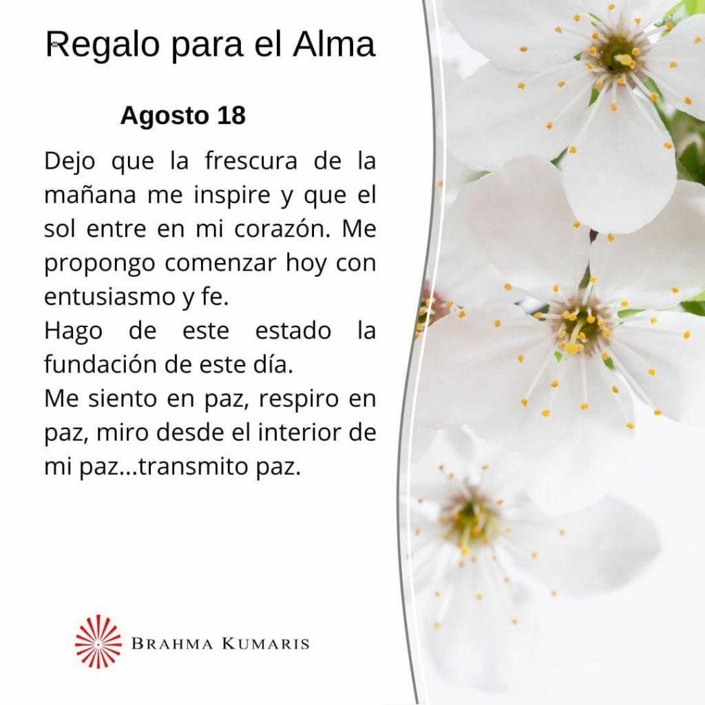 «Regalo para el Alma» de Brahma Kumaris, jueves 18 de agosto