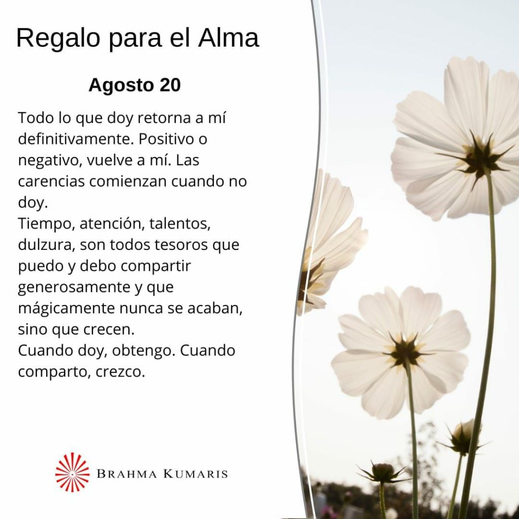 «Regalo para el Alma» de Brahma Kumaris, sábado 20 de agosto