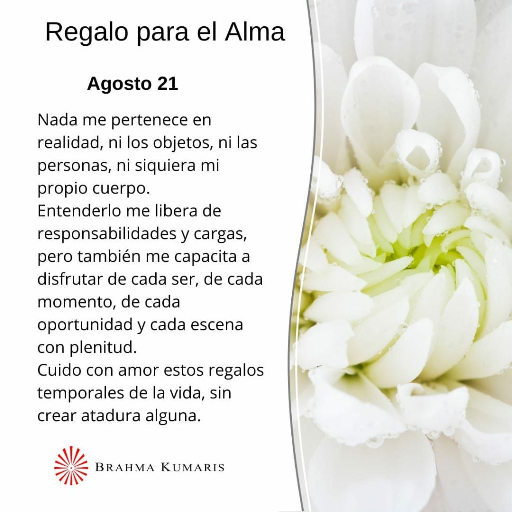 «Regalo para el Alma» de Brahma Kumaris, domingo 21 de agosto