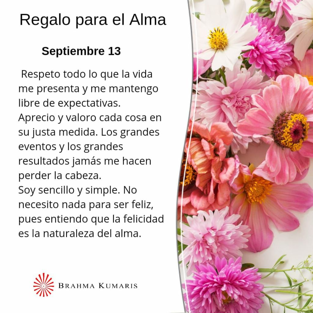 «Regalo del Alma» de Brahma Kumaris, martes 13 de septiembre