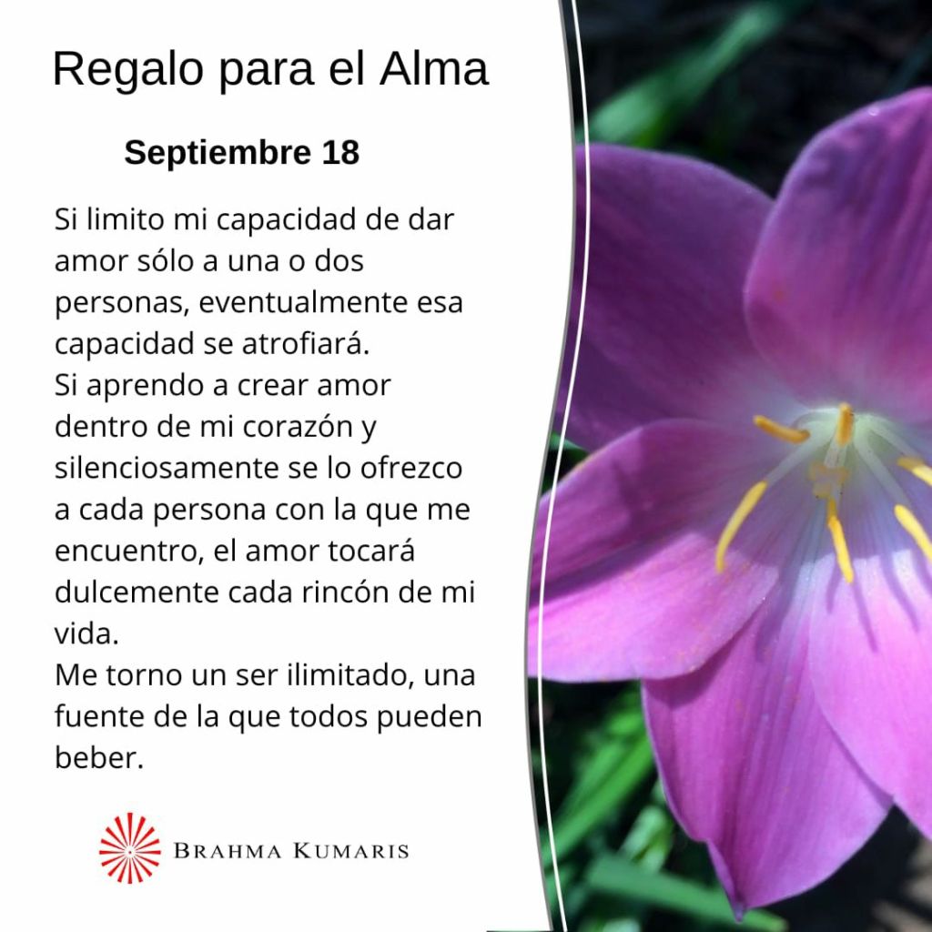 «Regalo del Alma» de Brahma Kumaris, domingo 18 de septiembre