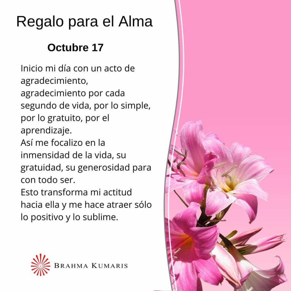 «Regalo para el Alma» de Brahma Kumaris, lunes 17 de octubre