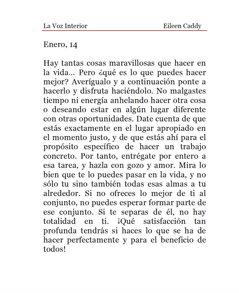 La Voz Interior de Eileen Caddy, sábado 14 de enero