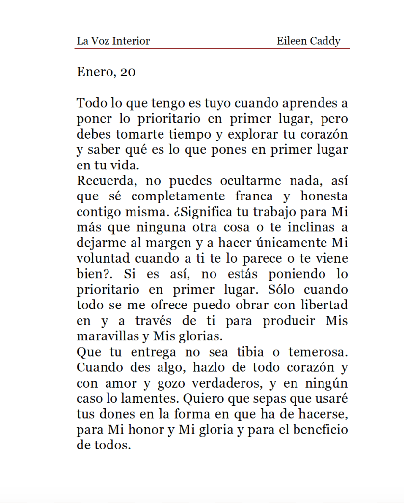 «La Voz Interior» de Eileen Caddy, viernes 20 de enero