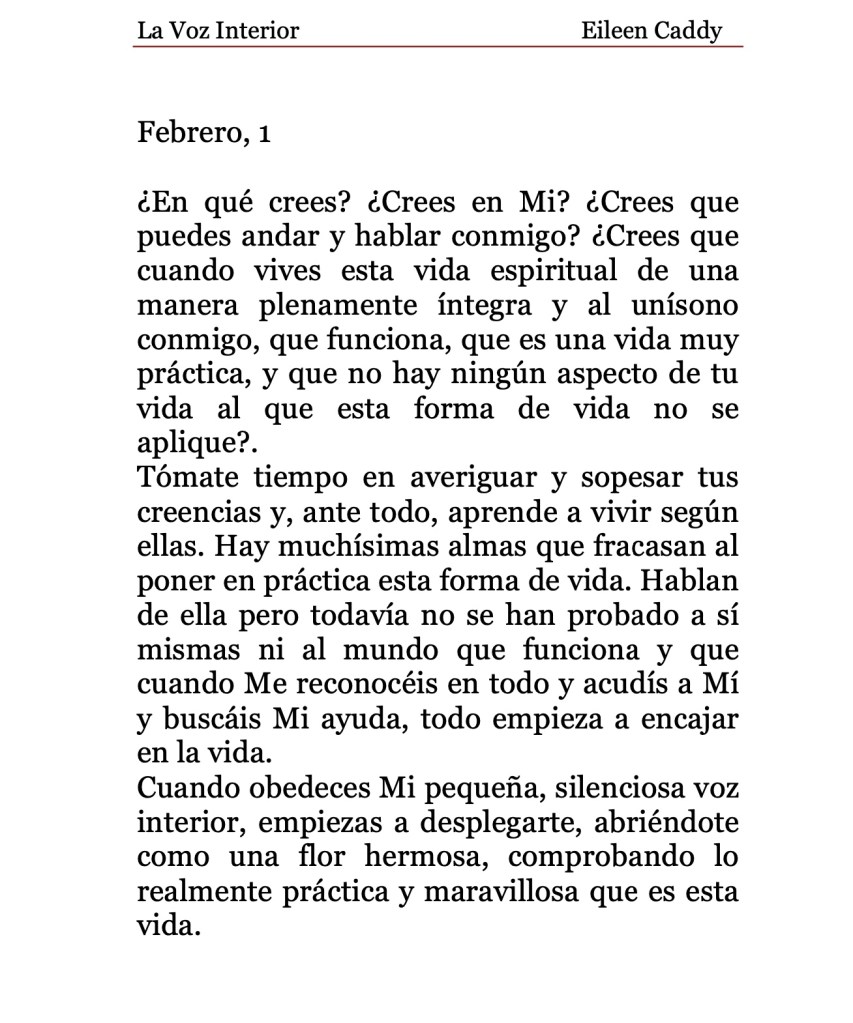 «La Voz Interior» de Eileen Caddy, miércoles 1 de febrero