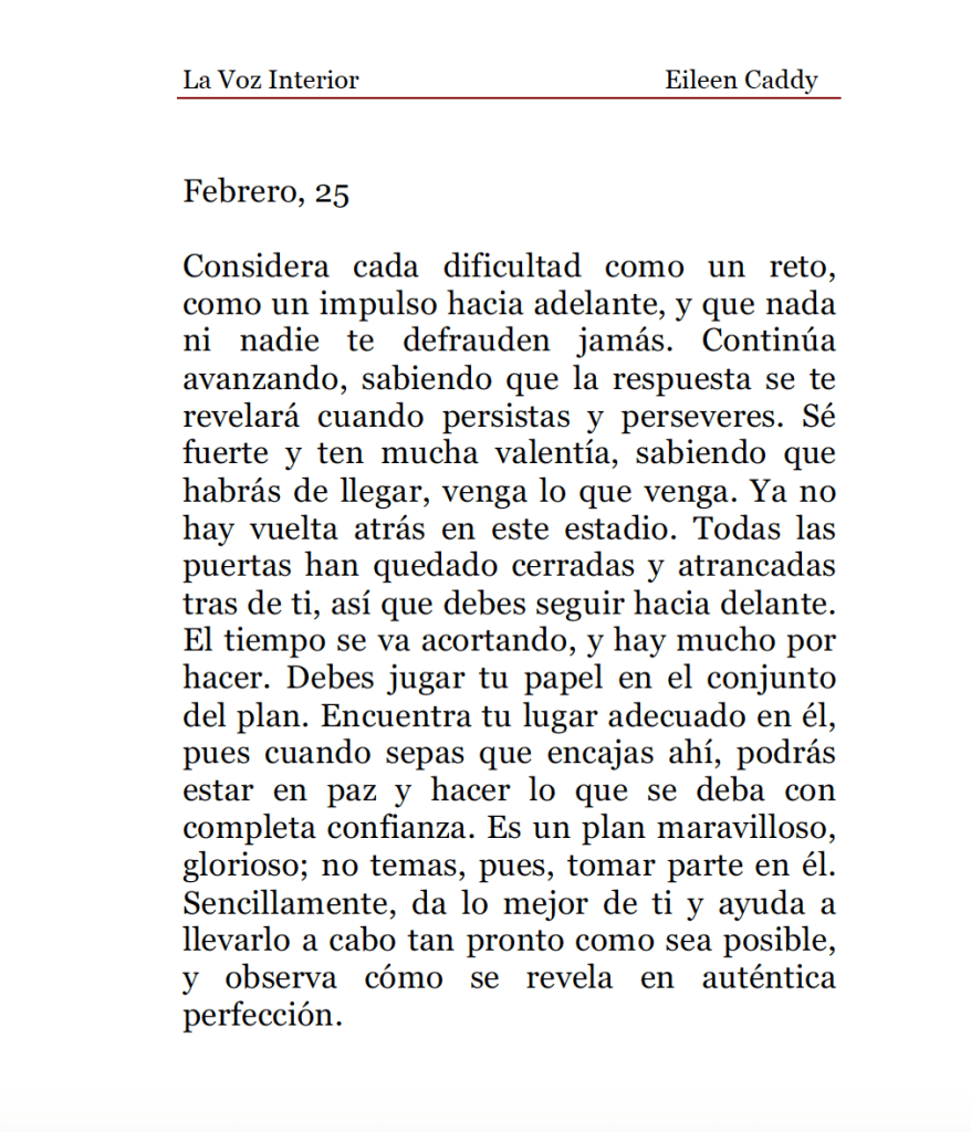 «La Voz Interior» de Eileen Caddy, sábado 25 de febrero