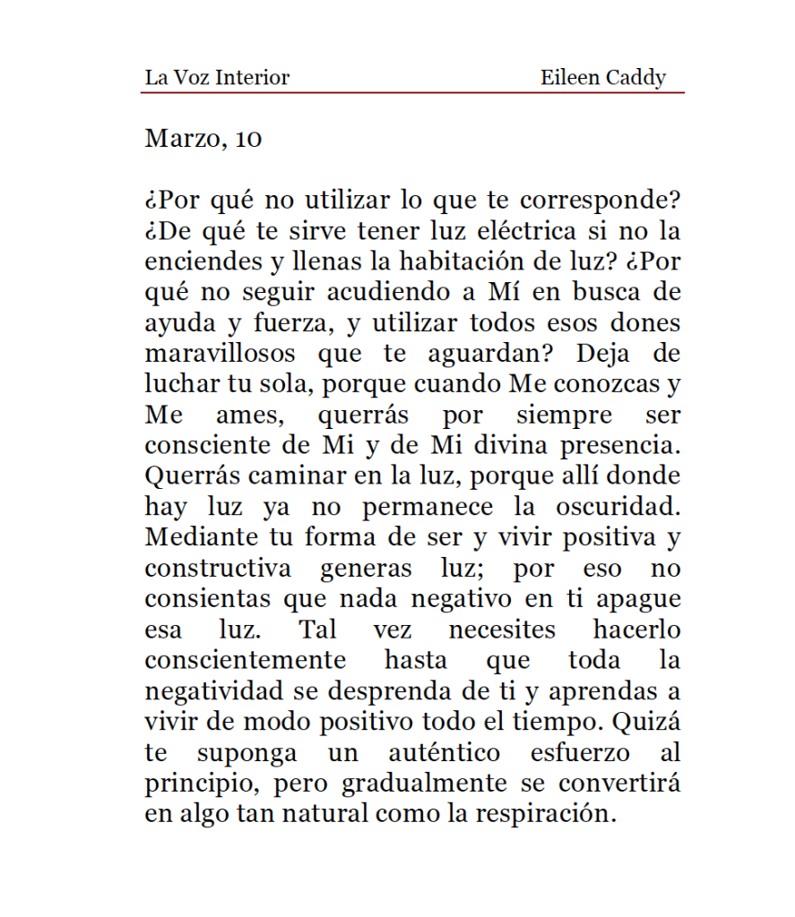 «La Voz Interior» de Eileen Caddy, viernes 10 de marzo