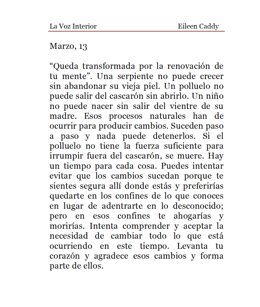 «La Voz Interior» de Eileen Caddy, lunes 13 de marzo