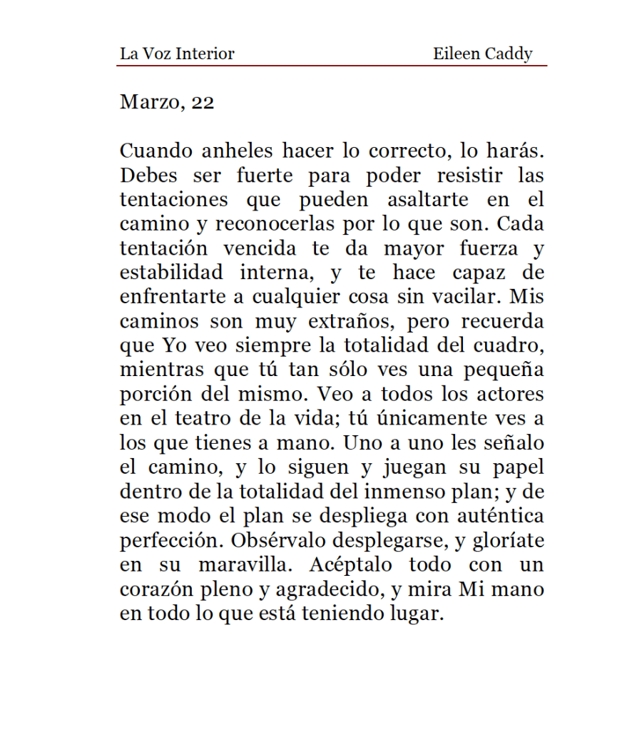 «La Voz Interior» de Eileen Caddy, miércoles 22 de marzo