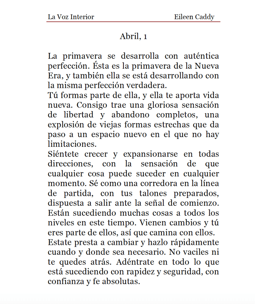 «La Voz Interior» de Eileen Caddy, sábado 1 de abril