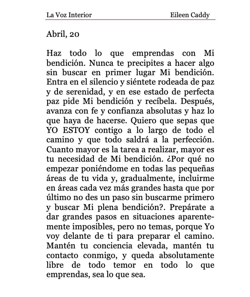 «La Voz Interior» de Eileen Caddy, jueves 20 de abril