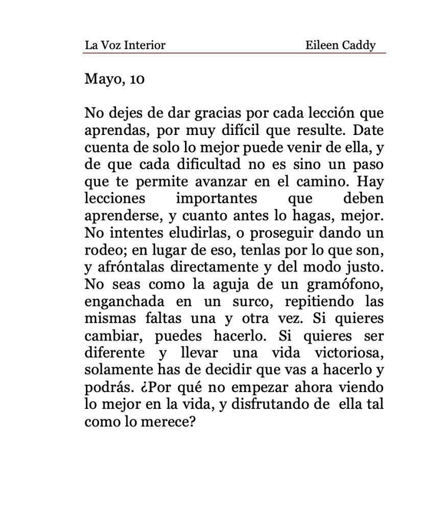 «La Voz Interior» de Eileen Caddy, miércoles 10 de mayo