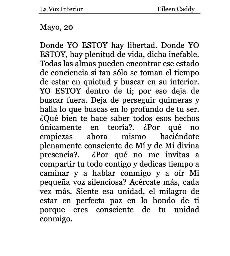 «La Voz Interior» de Eileen Caddy, sábado 20 de mayo