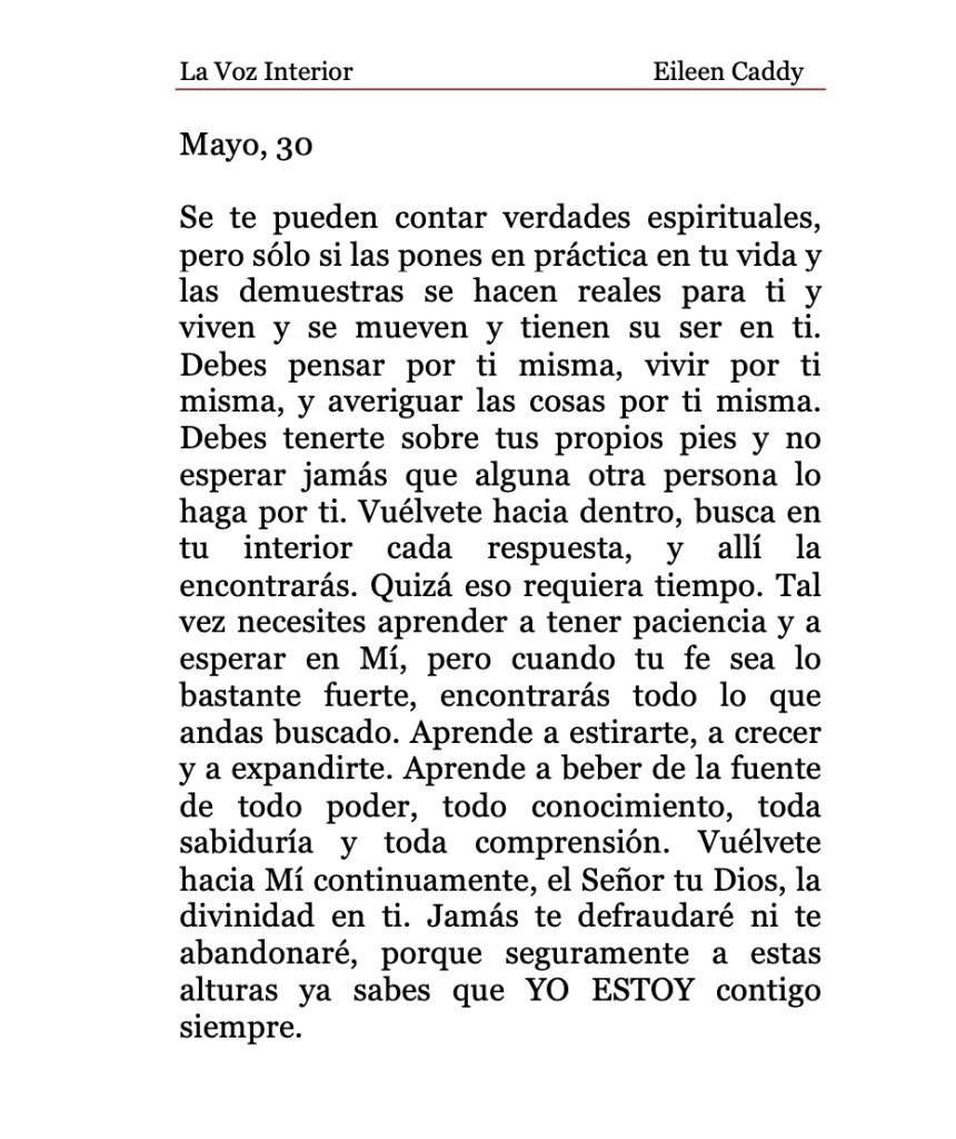 «La Voz Interior» de Eileen Caddy, martes 30 de mayo