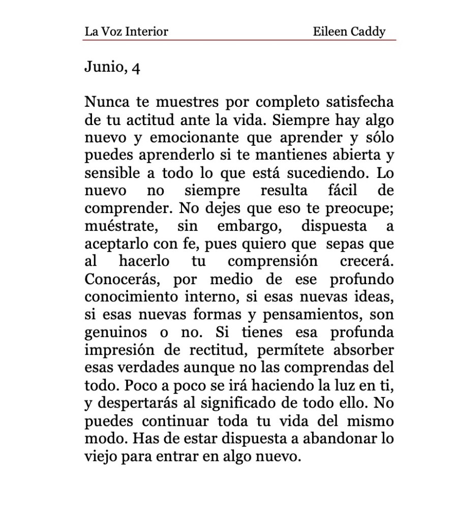 «La Voz Interior» de Eileen Caddy, domingo 4 de junio