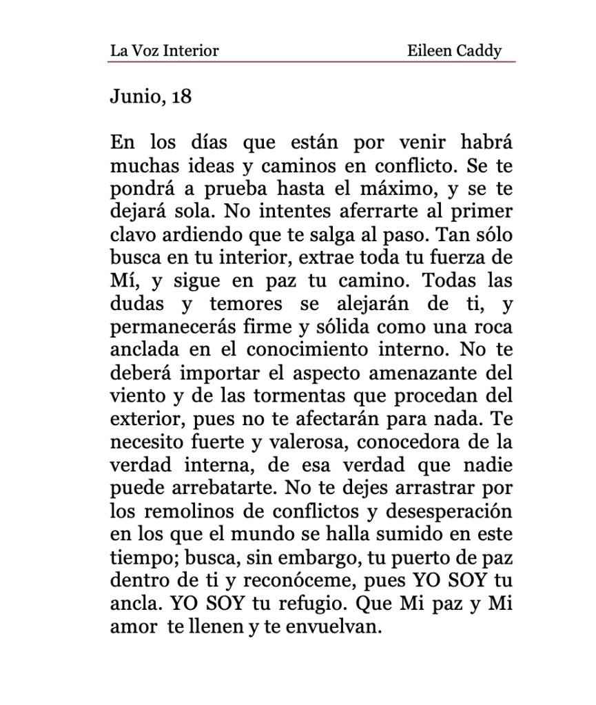 «La Voz Interior» de Eileen Caddy, domingo 18 de junio