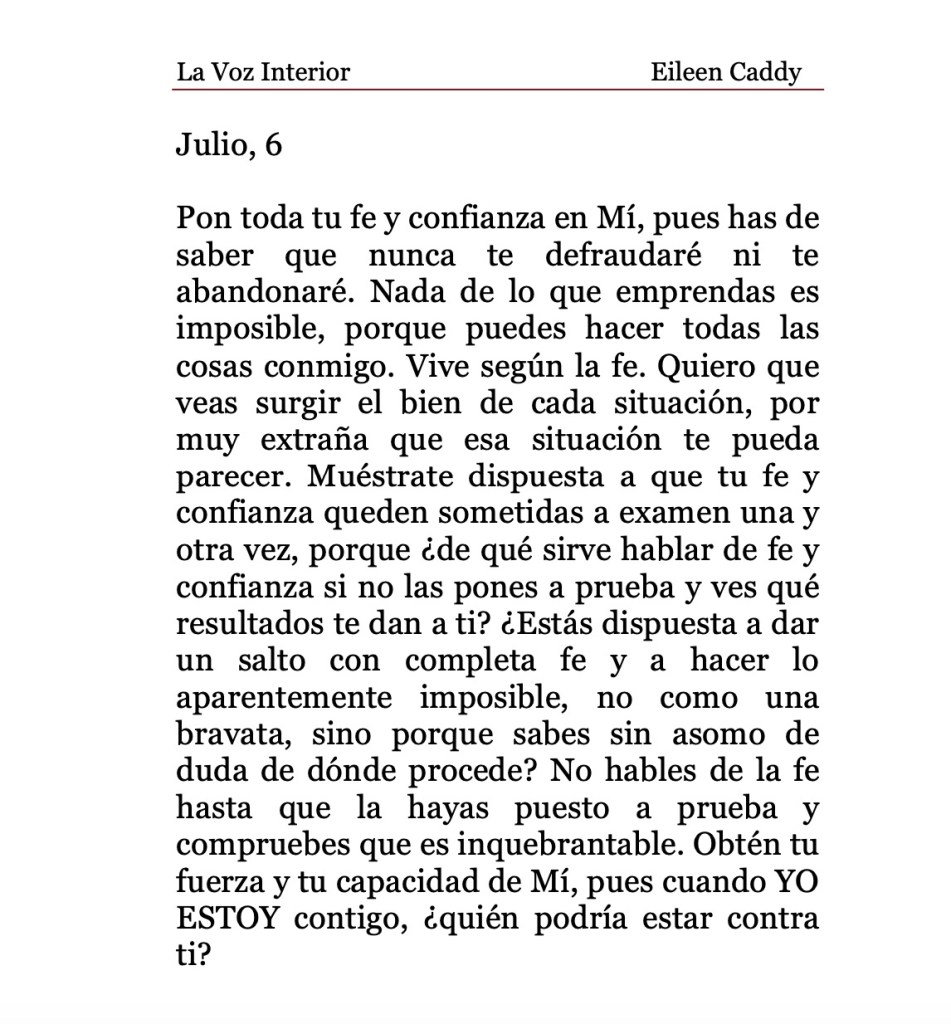 «La Voz Interior» de Eileen Caddy, jueves 6 de julio