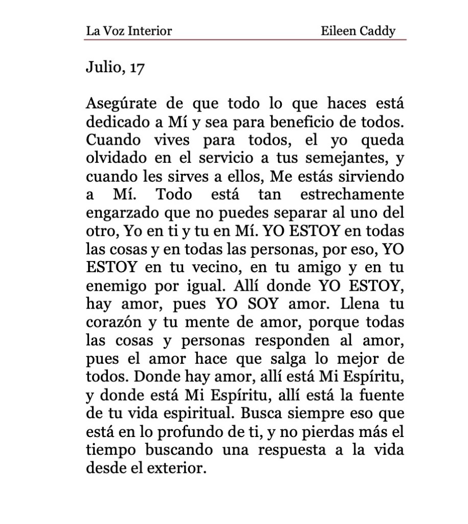 «La Voz Interior» de Eileen Caddy, lunes 17 de julio