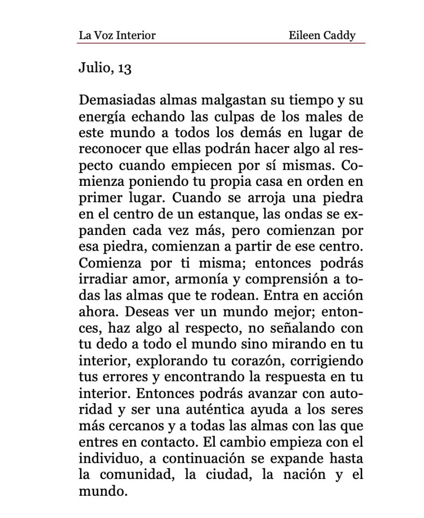 «La Voz Interior» de Eileen Caddy, domingo 13 de agosto