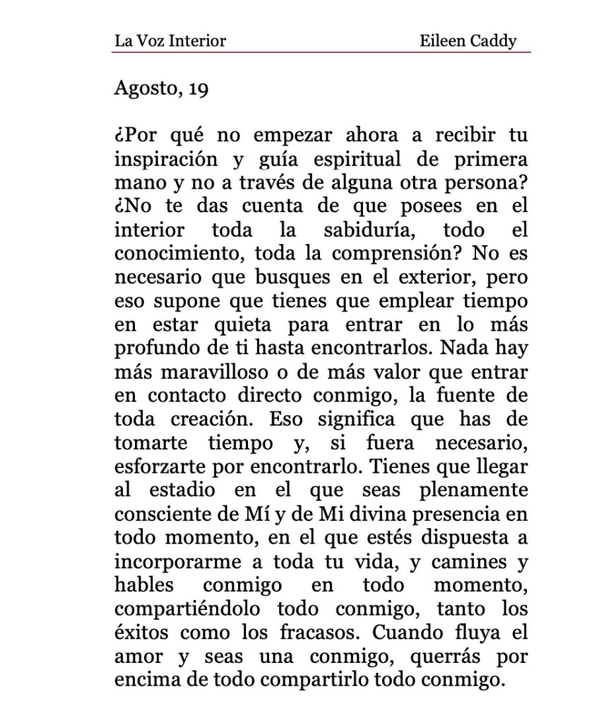 «La Voz Interior» de Eileen Caddy, sábado 19 de agosto