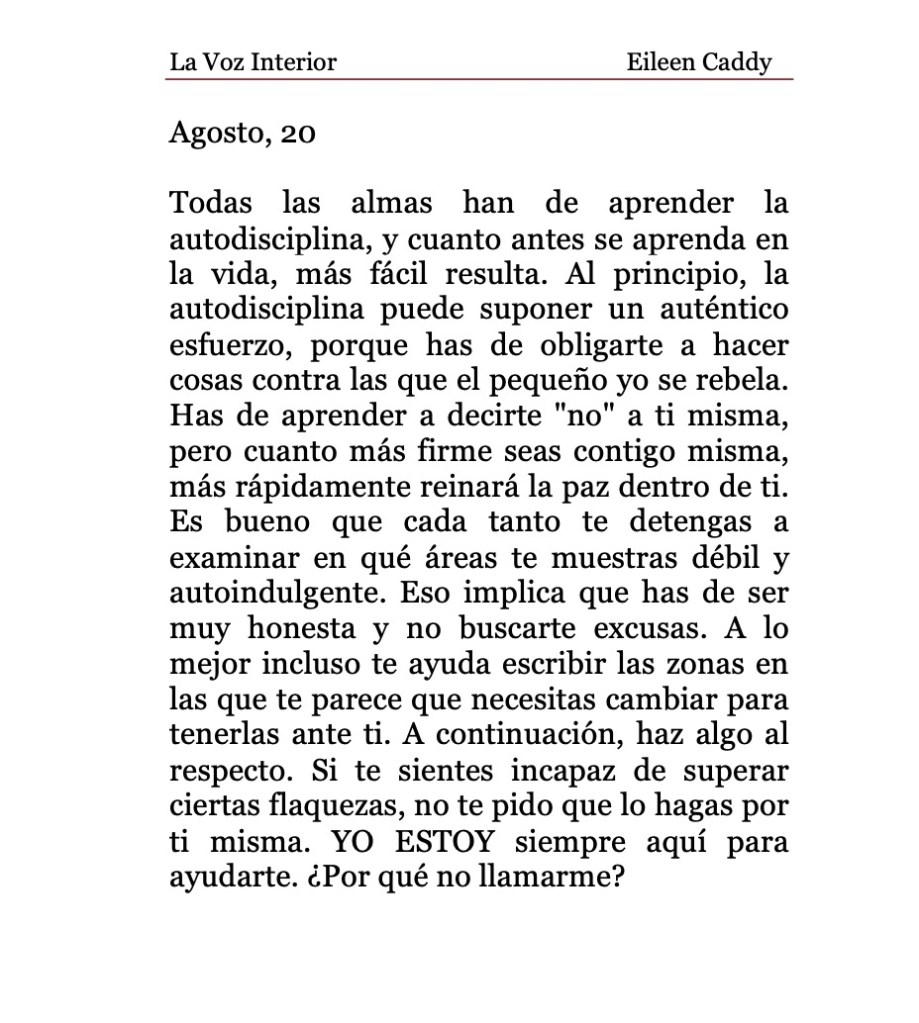 «La Voz Interior» de Eileen Caddy, domingo 20 de agosto