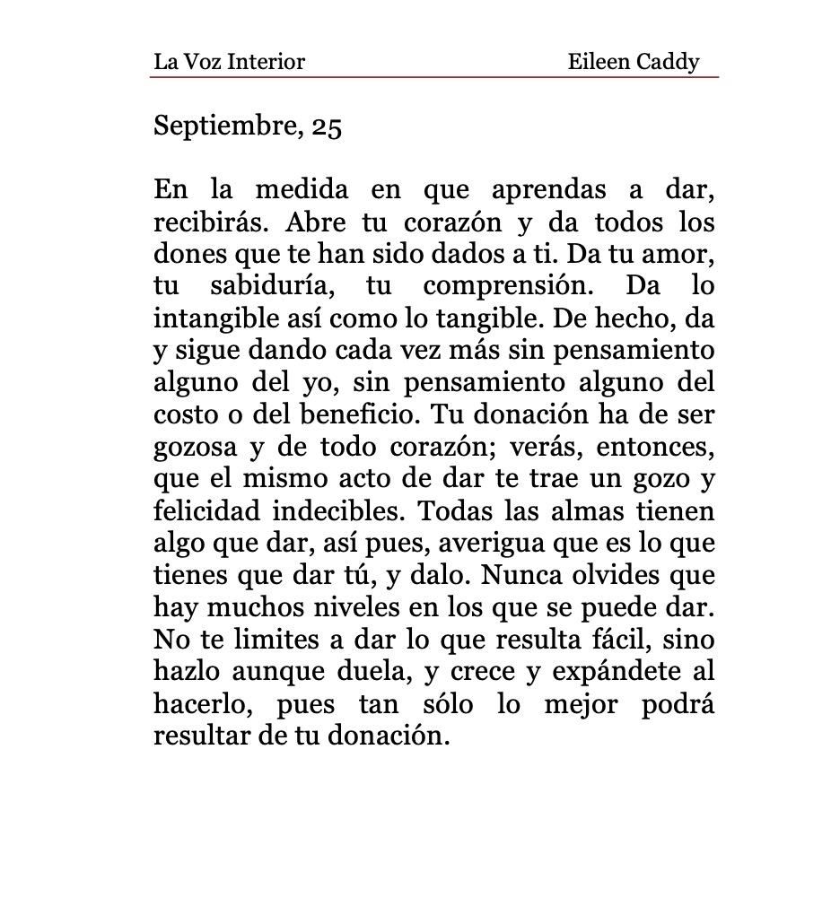 «La Voz Interior» de Eileen Caddy, lunes 25 de septiembre